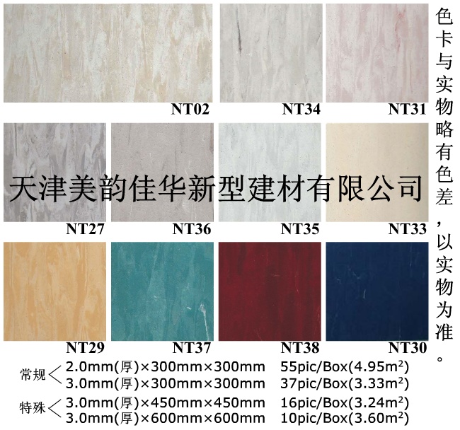 產地/廠家:天津/LG樂金新型建材 品牌:LG 規(guī)格(mm):2.0mm(厚)×300mm(寬)×300mm(長) 3.0mm(厚)×300mm(寬)×300mm(長) 3.0mm(厚)×450mm(寬)×450mm(長) 3.0mm(厚)×600mm(寬)×600mm(長) 包裝:55片/箱(4.95平方米) 37片/箱(3.33平方米) 16片/箱(3.24平方米) 10片/箱(3.60平方米) 耐磨層(mm):同質體 阻燃等級:B1 適合場合:辦公樓、學校、醫(yī)院、商業(yè)、餐廳、工廠。 產品特性:1單層結構,耐磨性好,壽命長; 2完美再現各種大理石花紋; 3施工與維護極其方便; 4不易燃,已通過國家固定滅火系統(tǒng)和耐火構件質量監(jiān)督檢驗中心檢測; 5環(huán)保產品,已通過國家環(huán)境測試中心檢測,無毒,無公害。