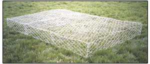 石籠網是金屬線材編織的角形網(六角網)制成的網箱,使用的金屬線徑是根據六角形的大小而不同.如果是金屬鍍層的金屬線六角形,則使用線徑為2.0mm到4.0mm的金屬線,如果是PVC包覆的金屬線編織的六角網,則使用外徑為3.0mm到4.5mm的PVC(金屬)線.外框邊緣的線則使用比六角網線粗一號的線。